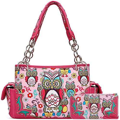Colorful Owl Western Summer Fashion Purse Concealed Carry Handbags Women Country Shoulder Bag Wallet Set