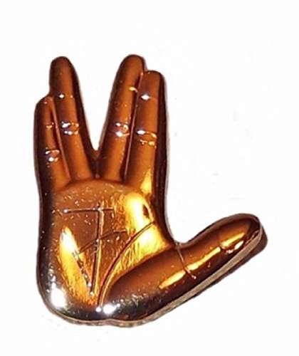 (New Horizons Production)/Accessories/Hair Accessories/DIRECT FROM USA/Star Trek Classic Spock Vulcan Hand 1″ Tall Metal Enamel Costume Pin