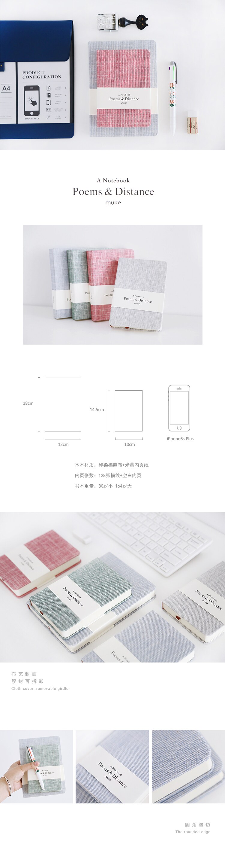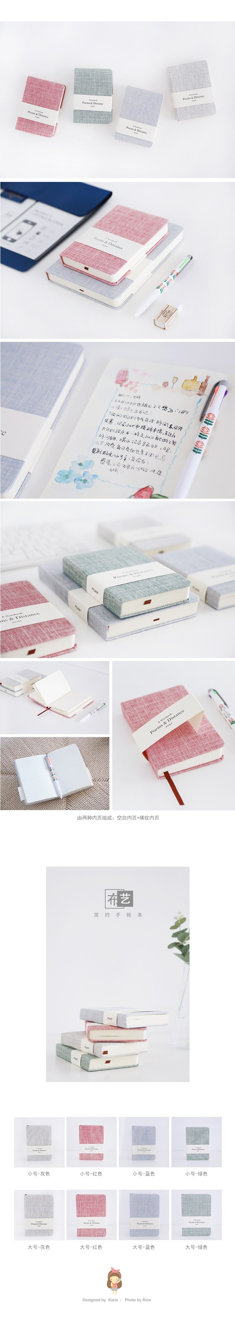 简约纯色布面手帐本 空白横线内页笔记本文具日记事本子