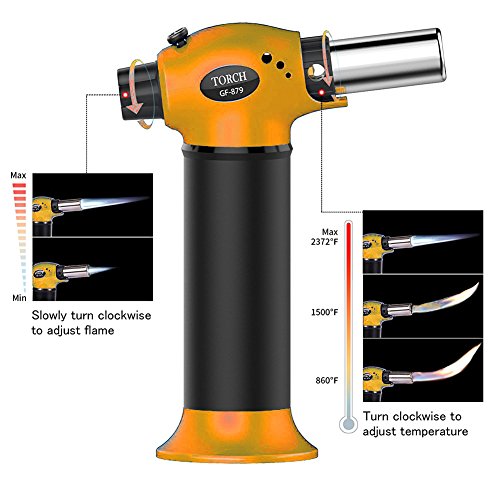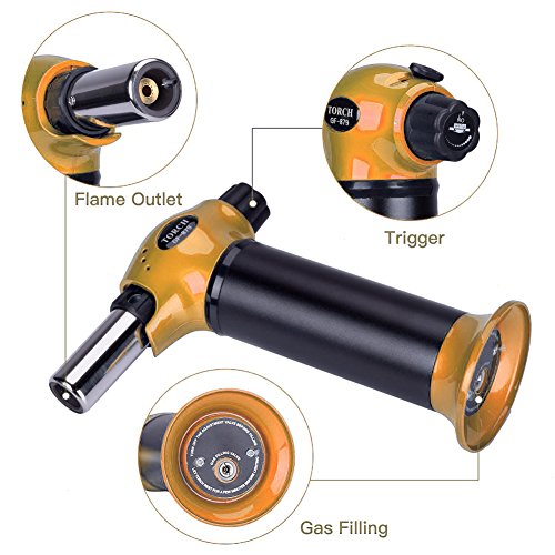- This kitchen torch features a highly durable sturdy metal body that is small, lightweight, and portable; this butane torch is ideal for home or cooking use such as caramelizing food and desserts, and soldering/brazing do-it-yourself jewelry or small metals; being versatile, it can be used outdoors for barbecuing or camping or as a survival tool.