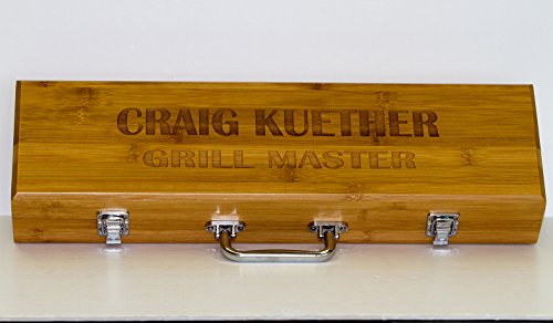 Personalized BBQ set Customized Barbecue Tools Bamboo Presentation Case, Grill Master, Birthday, Housewarming Gift