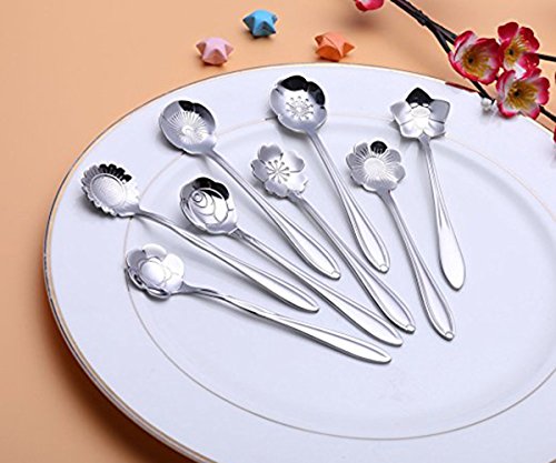 ☕Tea Spoon Nice looking with an elegant design. eight kinds of different flower type:Rose¡¢Sakura¡¢Sunflower¡¢Balloon Flower¡¢Cosmos Flower¡¢Plum flower ¡¢Sun flower¡¢Pansy flower.