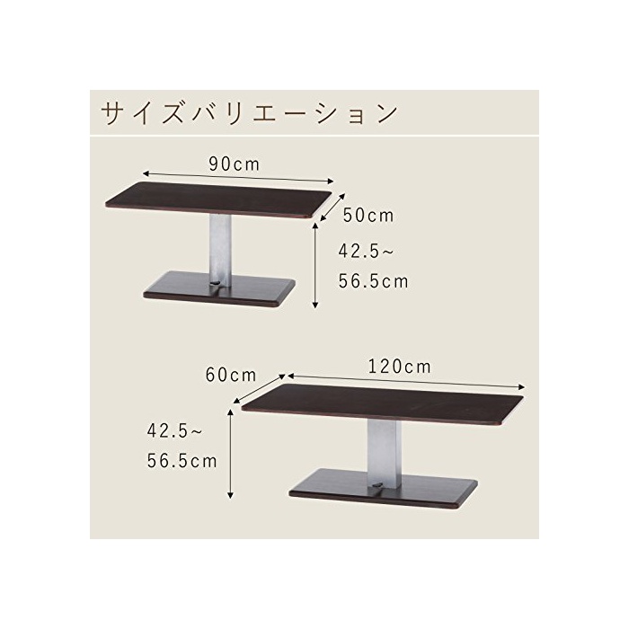 원본상품명: 不二貿易 昇降テ?ブル 幅90×?行50×高さ43~57cm ブラウン シルバ? 10497