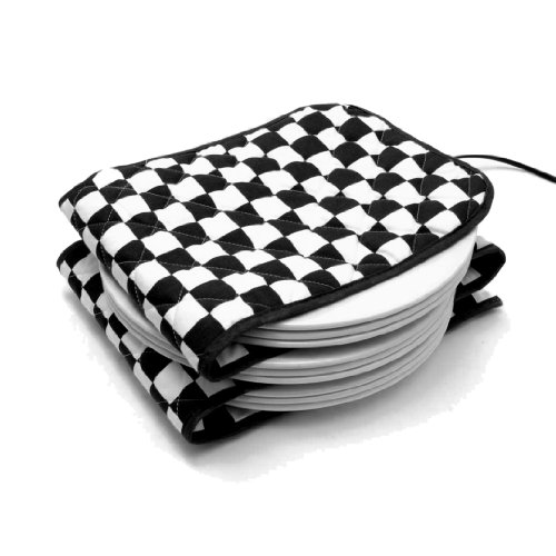 Hot Ideas Electric Plate Warmer - 12 Plate 110V (US PLUG) Black and white check