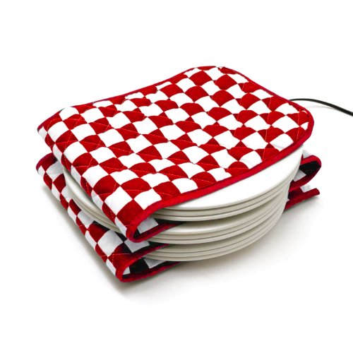 Hot Ideas Electric Plate Warmer - 12 Plate 110V (US PLUG) Red and white check