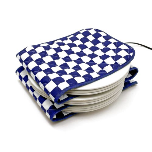 Hot Ideas Electric Plate Warmer - 12 Plate 110V (US PLUG) Blue and white check