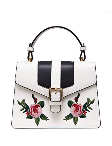 -. Feature : HIGH QUALITY: made of second layer genuine cowhide leather, good touching and comfortable / STYLISH DESIGN: messenger type kelly bag design, with flower embroidery and special buckle for added style, looks very exquisite and elegant / PRACTICAL: enough space with an inside slip pocket and a zipper pocket, equipped with an adjustable shoulder strap, can be used as a shoulder bag, crossbody bag or top handle handbag / DOUBLE SECURITY: zipper closure inside and magnet buckle closure outside, provide double security for your property / BAG DIMENSIONS: L8.66' x W3.15' x H10' , Shoulder strap can be adjusted from 19.68-22.8 inch