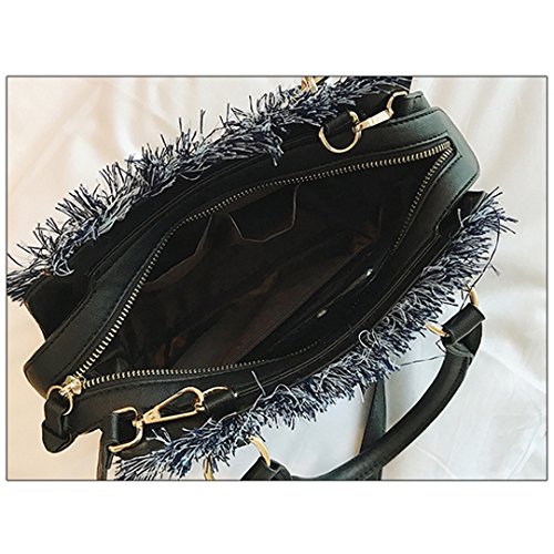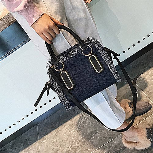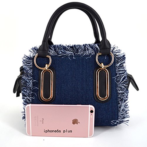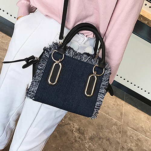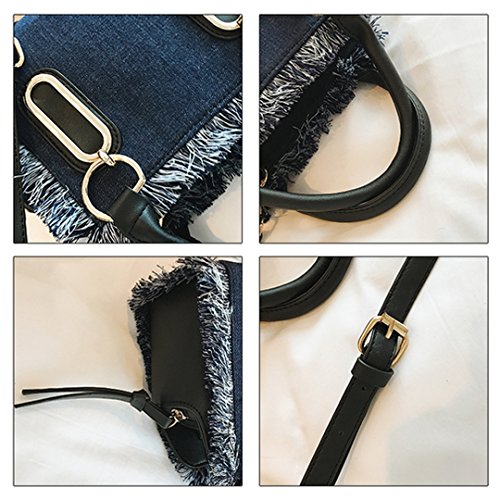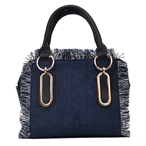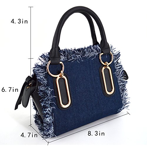 Felice Women Girls Fringe Messenger Cross-Body Bag Denim Shoulder Bag Handbag Top Handle Tote Satchel