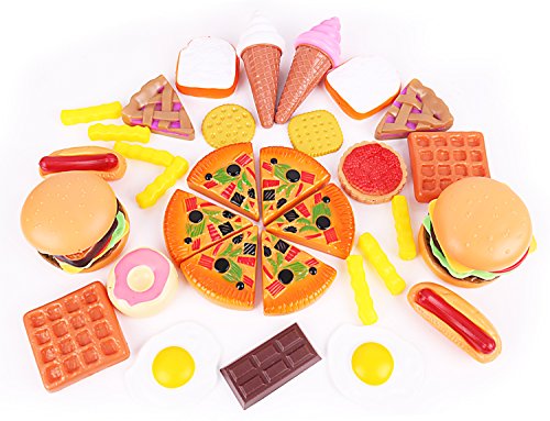 -. Feature : ❤ 120-Piece set includes a variety of foods including fruits, vegetables, meats, breads, pastries, beverages, sandwiches, breakfast, snack, pizza, dessert and more! / ❤ Perfect accessory for play kitchens with fun and colorful items that look realistic. Great for pretend play breakfast, lunch, dinner, and dessert! / ❤ Made using the highest quality materials. Tested to be safe for kids. Fun toy for toddler girls and boys. Small pieces suitable for a 3-year old children and over. / ❤ Helps develop child's mind, creativity and thinking ability and train their hand-eye-coordination and hand flexibility by their own operation. / ❤ Guaranteed that your 3 year olds and older will stay busy while pretending to shop for groceries, play kitchen, and creating delicious pretend meals for the family to munch, or your money back!