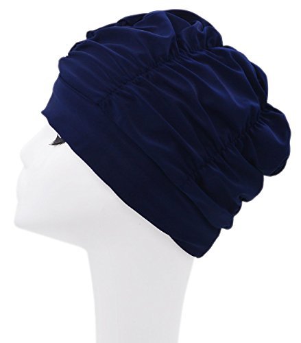 -. Title : YASIDI Swimming Caps Long Hair Swim Cap Pleated Cloth Fabric Bathing Hats Lycra Beanie Hat for Adult Men Women