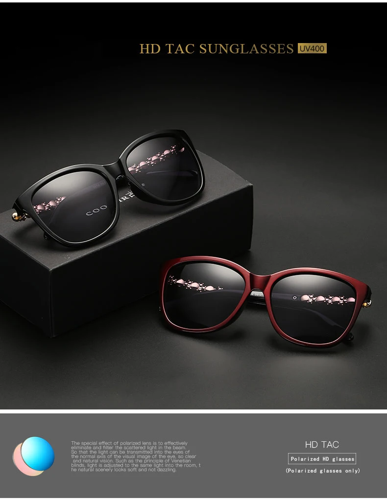 Lens material:Advanced resin HD polarizing lenses