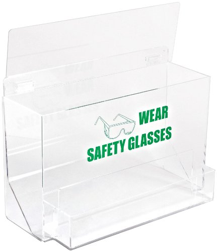 Brady PD701E 12-1/4" Height, 18" Width, 9-1/4" Depth, Tough Acrylic, Green On Clear Color Large Capacity Eye Protection Dispenser, Legend "Wear Safety Glasses (With Picto)"