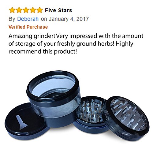 ➔ TOP RATED PREMIUM HERB and WEED GRINDER: Clear chamber window allows you to view your premium herbs as you grind to your desired consistency.