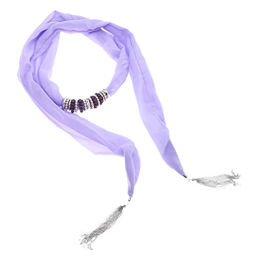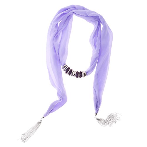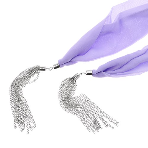 Specification: Material: Chiffon Farbic, Plastic, Iron tassel; Scarf length: Approx. 150-160cm/ 59-63 inch Width: Approx. 9.8cm/ 3.8 inch Tassel: Approx. 10cm/ 3.9 inch