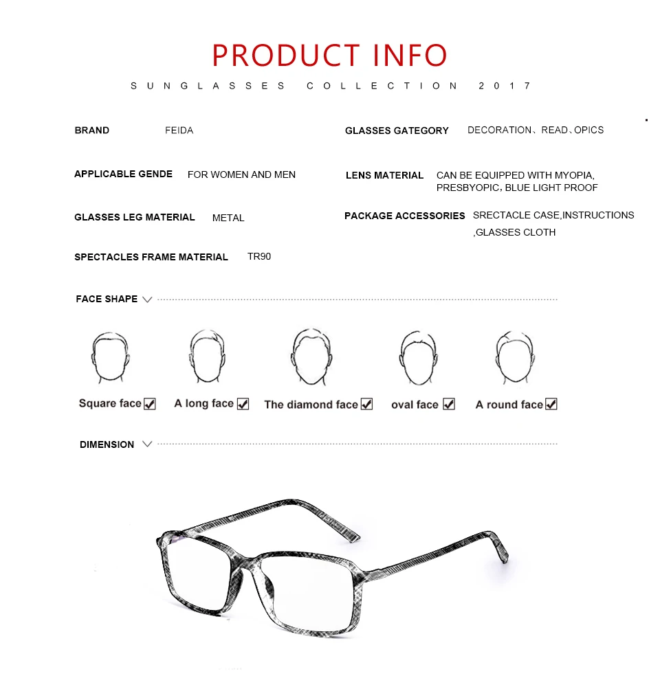 Lens material:Can be equipped with myopia/presbyopic/blue light proof
