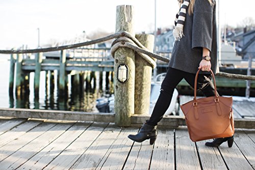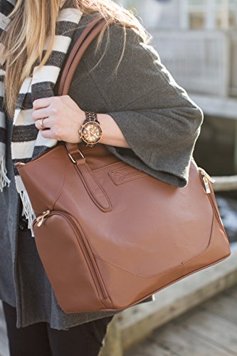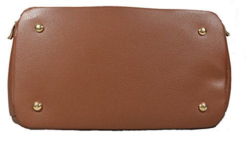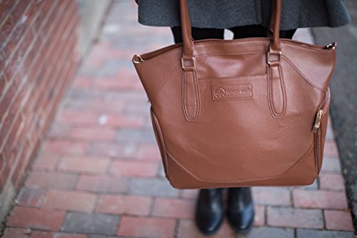 Stylish, durable, quality, easy-to-clean faux leather in classic medium-brown with gold hardware