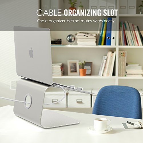 -. Feature : One-piece high quality Aluminum with silicone feet design provides solid stability, cable organizer ring behind routes wires neatly / Positions the LCD at eye level to relieve neck and shoulder strain. / Anti-skid bottom provides maximium stability on any surface. / Open design provides sufficient space for airflow and keyboard and mouse accommodation. / Strong construction accommodates 12-17 inch notebook computers or laptops.