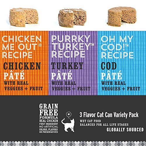 Chicken Pate with real veggies + fruit, Turkey Pate with real veggies + fruit, Cod Pate with real veggies + fruit