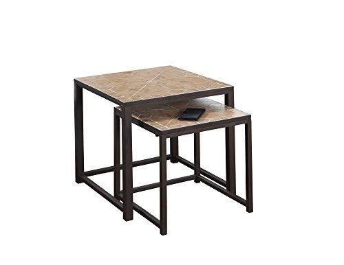 -. Title : L&S Basics 10570 Nesting Table - 2Pcs Set / Terracotta Tile Top / Brown