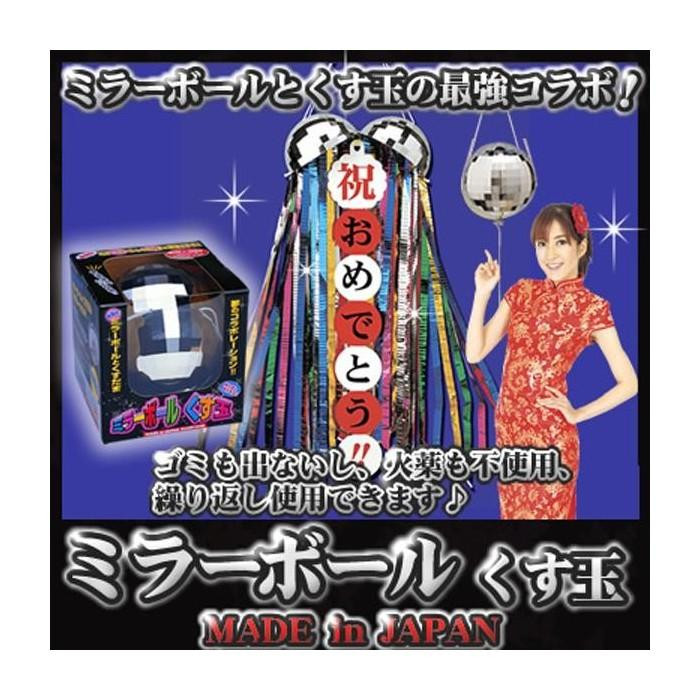 | ミラーボールの中身がくすだまになっており、「祝おめでとう」の垂れ幕とたっぷりの5色のメタルテープが入っています。使用後は中身を元に戻して何度でも使用でき、メッセージを書き込める無地の垂れ幕付きなので、オリジナルのくすだまも作ることができます。くすだま本体は、ミラーボールとしても使用可能。照明を反射してキラキラ輝くので吊しておくだけでもパーティー気分に♪ |