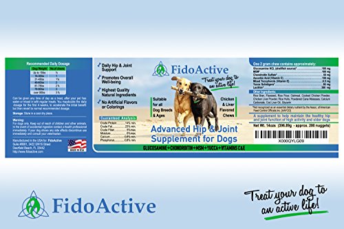 -. Title : Advanced Hip & Joint Supplement for Dogs Contains All Natural Glucosamine Chondroitin MSM Lecithin Yucca and Vitamins in 200-Count Chicken & Liver Flavored Heart-Shaped Soft Chews