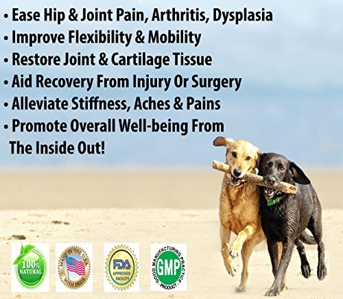 -. Feature : SIZZLING SUMMER SALE! 200 TASTY CHEWS that your dog will clamor for. We use the highest purity glucosamine & chondroitin, sourced in the USA, to provide crucial vitamins, minerals, enzymes and nutrients for energy and strength. / KEY NATURAL INGREDIENTS support safe, effective pain relief without side effects. MSM, Yucca and vitamins C & E lubricate joints while Lecithin is vital to cellular repair, promoting the healing process. / PROMOTES JOINT HEALTH AND MOBILITY to reduce pain caused by arthritis and hip dysplasia. No matter the breed or size, our soft chew supplements will help your dog lead a happier, pain-free life. / FDA-APPROVED GMP-certified facilities ensure pharmaceutical-grade consistency and quality per dose. Enjoy peace of mind that your dog is receiving safe and effective pain relief for a long, healthy life. / 90-DAY SATISFACTION GUARANTEE that we will refund your purchase P.R.Ice if our product doesn't perform to your expectations. Buy more and save with our exclusive multi-purchase discount codes.