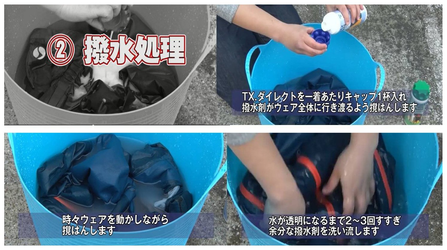 (In case of 1.2 clothes, the water level is medium "35 liters") Shake the NIKWAX direct wash in well and put an appropriate amount into the washing tub.