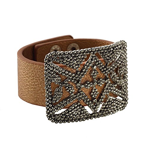 Bronze Cuff with Antique Silver Rectangle Buckle Fashion Strap Bracelet Jewelry