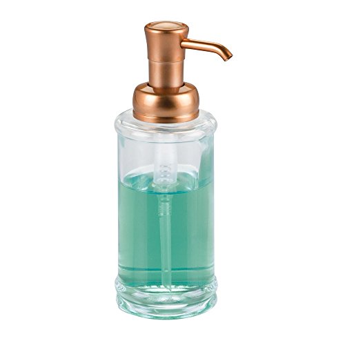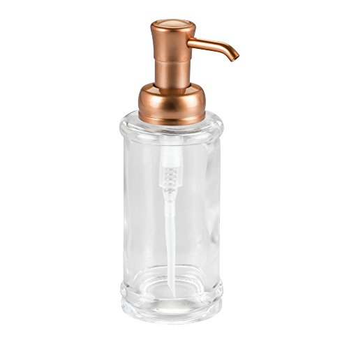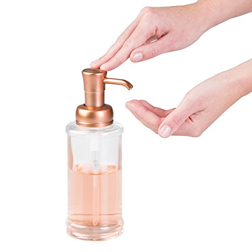 InterDesign Hamilton Glass Soap & Lotion Dispenser Pump for Kitchen or Bathroom Countertops, Clear/Copper