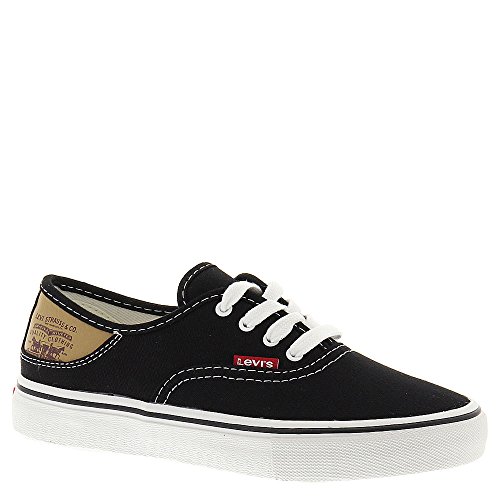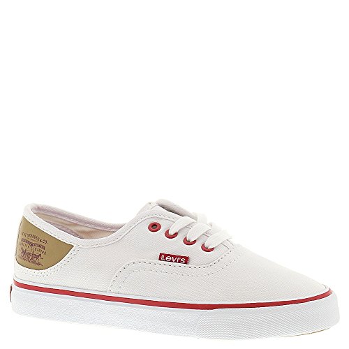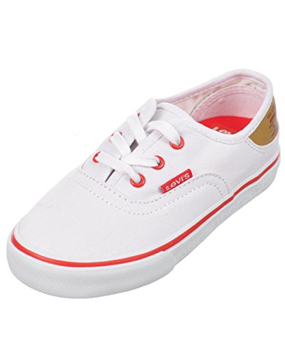 Let your active one steal the show in Levi's® Kids Jordy Buck! Durable canvas uppers with nubuck quarter panel that features Levi's logo stamp. Canvas lining and a lightly cushioned footbed provides all-day comfort. Lace closure with metallic eyelets for secure fit. Embossed contrast Levi's "batwing" logo detailing at heel. Textured rubber toe bumper with a rubber midsole. Pop color midsole stripe. Durable rubber outsole. Imported. Measurements: Weight: 9 oz Product measurements were taken using size 3.5 Big Kid, width M. Please note that measurements may vary by size.Feature