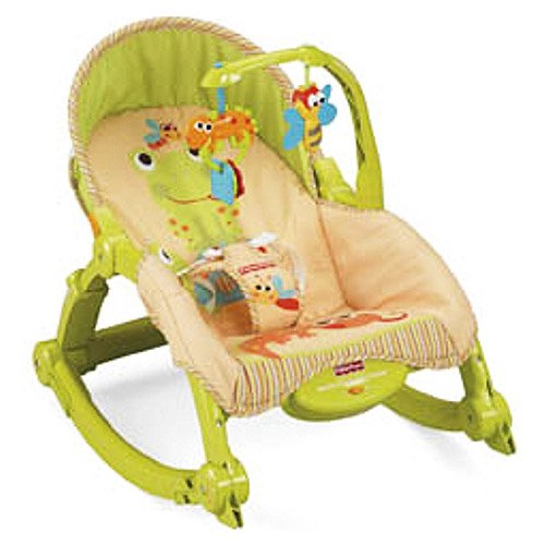Product Description This Fisher-Price rocker is a perfect grow-with-baby rocker and seat. Newborns enjoy a low-profile position that is a comfy place to put baby for either rocking or sitting still and there are vibrations to soothe. When baby has more motor control, a removable toy arm provides two toys to entertain baby - a cute bug with rattle beads and a lizard with clacker paddles for bat-at play. For toddlers, the toy arm is removable; the portable baby rocker supports extend to a higher position, allowing toddlers to have both a stationary seat and a rocker.Fisher-Price Newborn to Toddler Portable Rocker:Portable for on-the-go convenienceGrow-with-baby rocker and seatLow-profile position for newbornsHigher rocking position for toddlersFisher-Price rocker requires assembly Portable baby rocker requires one D battery, not included 0