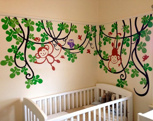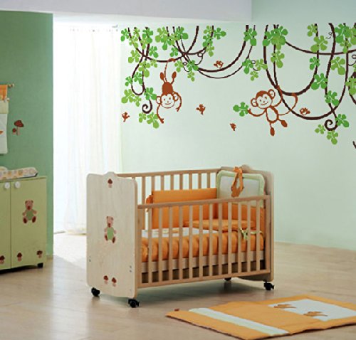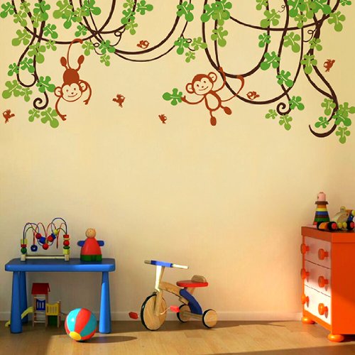 Pop Decors Removable Vinyl Art Wall Decals Mural, Playing Monkeys