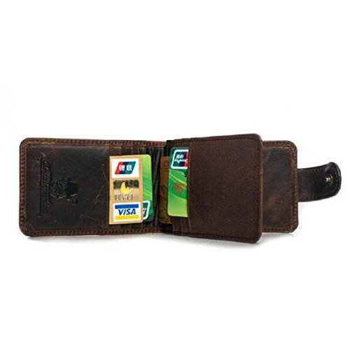-. Feature : PREMIUM MATERIALS : The wallet purse is created with genuine cowhide grain leather and fashion designed.It's very durable and eco-friendly which is a good wallet gift for men. / Dimension: L 12 * H 9 * W 2 cm , ATTENTION: Our logo is engraved in the surface of bag. / Very slim and nice looking. Just 20 mm flat. Fashion thin design make card holder looks more elegant and vintage. / Smart Design: Different from other credit card wallet, this wallet with the convenient pop-up function all cards slide out gradually, makes it so easy to find which card you're looking for. The cards will not fall out and is a perfect mens smart wallet. No problem to keep it in your front / back pocket. No breaking, no bending. / Structure:It includes a metal case compartment with pop up button that can holds about 16 cards that can meet daily need (driver's license, insurance card etc).
