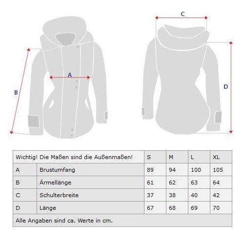 -. Feature : Die Jacke fällt kleiner aus, bitte eine Nummer größer bestellen / Kapuze mit Reißverschluss abnehmbar / Durch Taillenzugband variierbare Form / Mit Druckknopfleiste verdeckter Frontreißverschluss / Edle Gold farbene Reißverschlüsse und Knöpfe