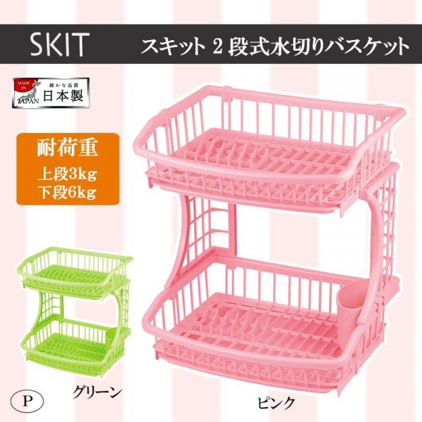 fk094igrjs2段式だからたくさんの食器などをスッキリ収納!!たまった水を簡単に捨てられるスライドトレー。 製造国:日本 素材・材質:ポリプロピレン(耐熱温度120度) 商品サイズ:(約)幅375×奥行295×高さ425mm(水切りポケット含まず) 仕様:耐荷重:上段3kg・下段6kg※お届け地域により、別途運賃がかかる場合やお届けできない場合がございますので、お問い合わせ下さい。