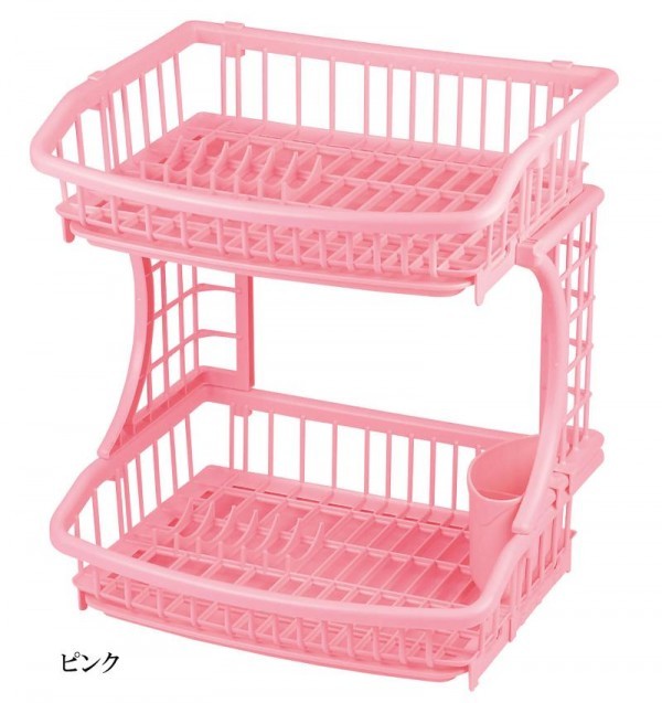 2段式だからたくさんの食器などをスッキリ収納!!たまった水を簡単に捨てられるスライドトレー。