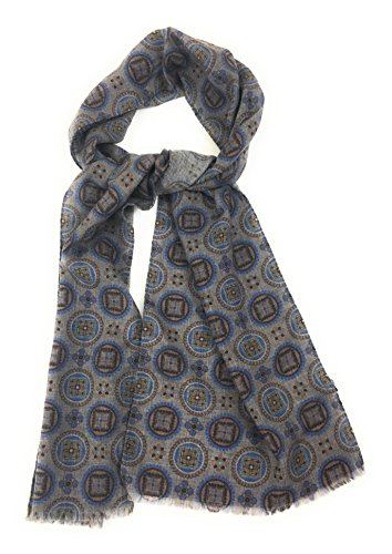 (Romano Botta)/Accessories/Cold Weather Accessories/DIRECT FROM USA/Romano Botto Men's Scarf Gray Blue Medallion Wool