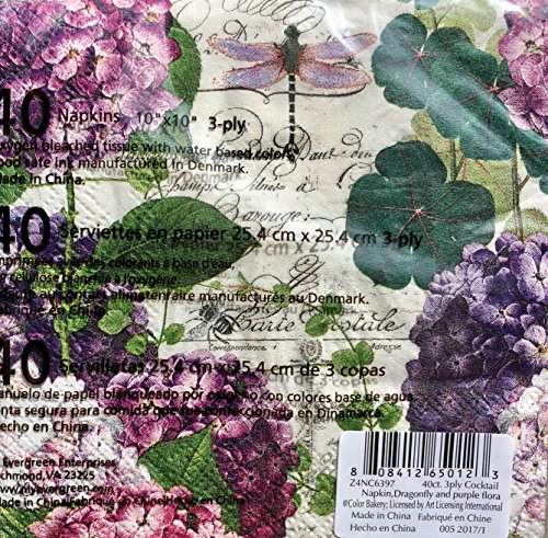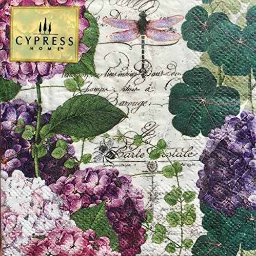 Cypress Home Cocktail Beverage Paper Napkins ~ Dragonfly and Purple Hydrangea Flora 40 ct