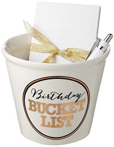 Enesco “Birthday Bucket List” Ceramic Bucket and Stationary Set, 5 Inches