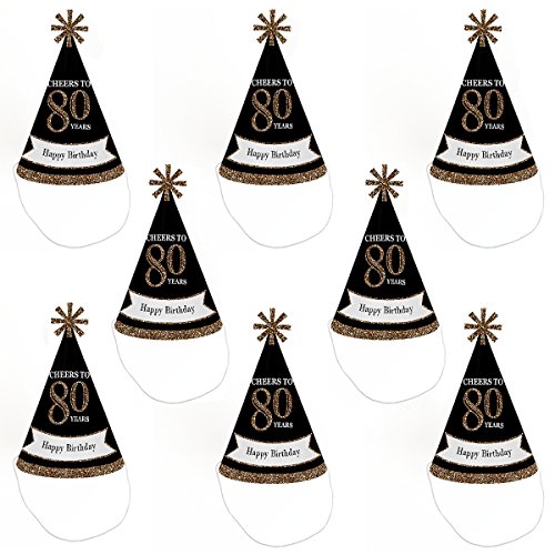 Studio : Big Dot of Happiness, LLC Publisher : Big Dot of Happiness, LLC Binding : Toy Product Description Everyone will be ready to celebrate the guest of honor's birthday when wearing an Adult 80th Birthday - Gold Cone Birthday party hat. This set of 8 (Standard Size) birthday party hats are a great addition to your event and is sure to get everyone smiling! Each Adult 80th Birthday Party Hats perfectly themed and has a festive star at the top. These party hats even come with a "Happy Birthday" printed on them! Be sure to have your camera ready because these Adult 80th Birthday - Gold party hats are going to give you some great photos! 0