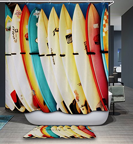 HMWR Mildew Resistant Shower Curtain Surfing Skateboard Waterproof Polyester Fabric Bathroom Deco 72" x 72"