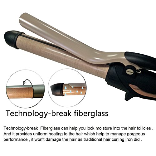 Protect your fingers and scalp avoid burn:This hair curling iron use PTC heater and fiberglass fabric coated to heat-up to 450°F within 90s to fast styling .And it helps lock moisture into the hair follicles to reduce frizzy.