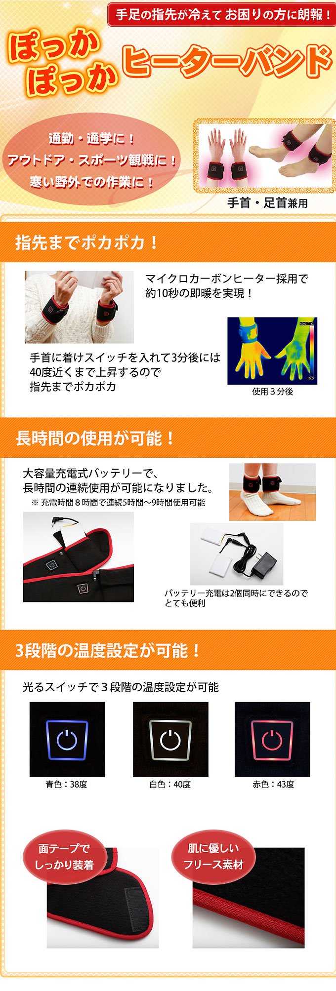Heater band x 2, Lithium battery x 2, Charging adapter
