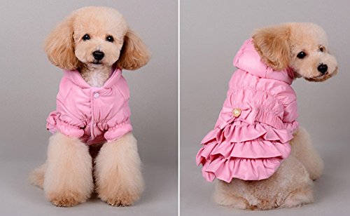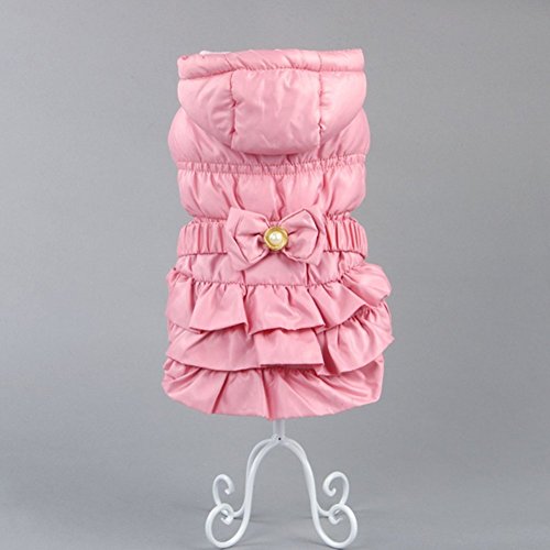 -. Title : Zerotone Luxury British Style Warm Hooded Coat Dress with Pearl Bow for Small Pet Dog Cat 2 Colors XS-XL