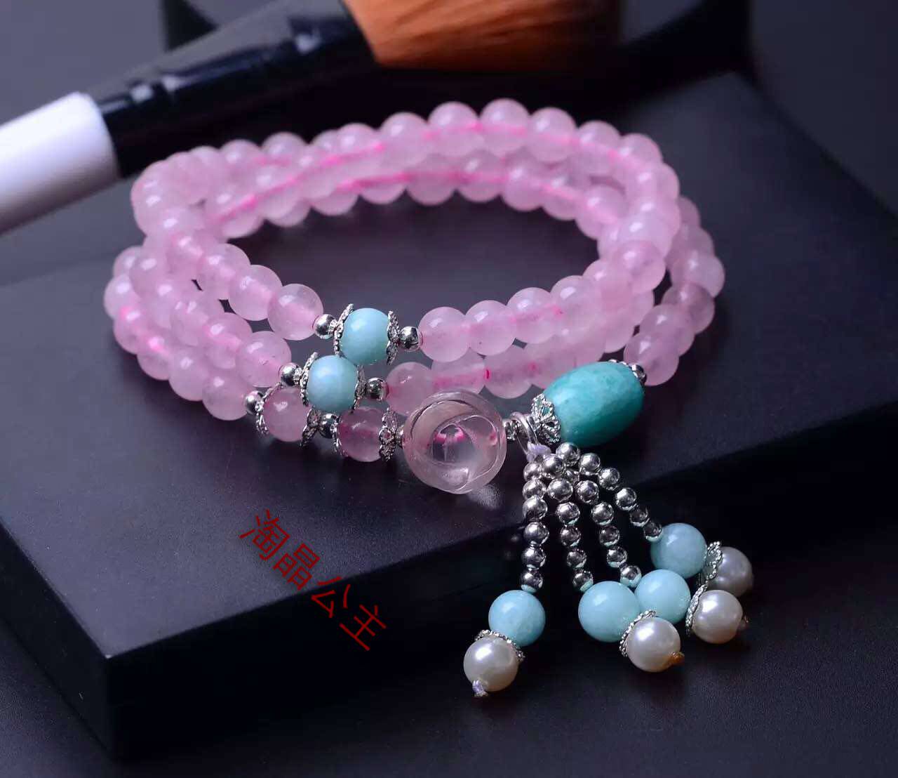 天然马达加斯加粉水晶天河石手链手串项链吊坠饰品