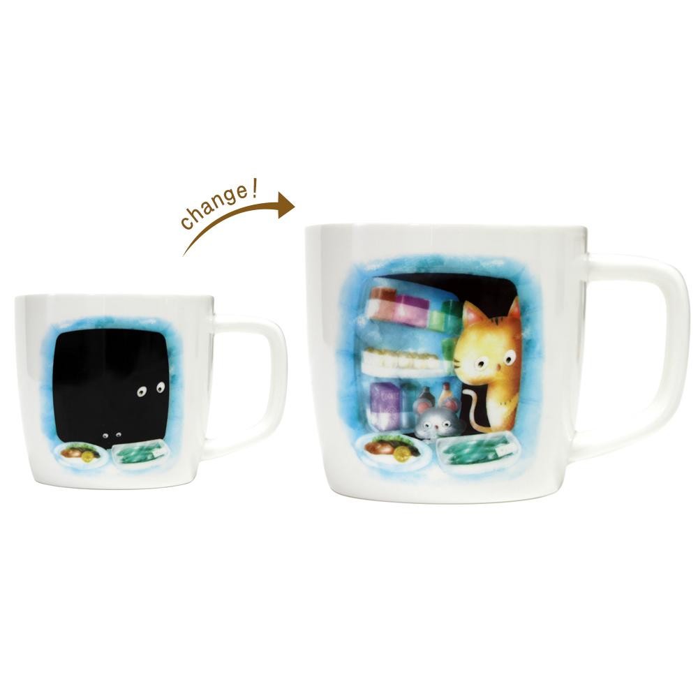 お湯を注ぐと隠れていたイラストが現れる不思議なマグカップです。ネズミのブランと仲間たちが、日常に楽しい驚きを与えてくれます。 製造国:日本 素材・材質:磁器 商品サイズ:H80×W115×D85mm 仕様:容量:280ml電子レンジ・食洗機使用不可 ※サプライヤー直送品 ご注文後3~4営業日後の出荷となります【商品名】CHEE.GEE.Zoo SurpriseMug れいぞうこ AR0604235
