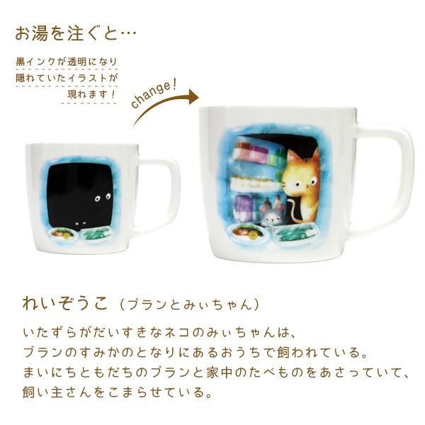 お湯を注ぐと隠れていたイラストが現れる不思議なマグカップです。ネズミのブランと仲間たちが、日常に楽しい驚きを与えてくれます。