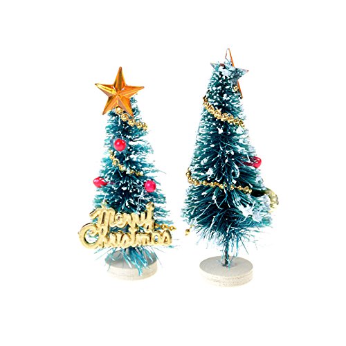 SNNplapla 5pcs Merry Christmas Mini Artificial Pine Trees with Wood Look Base Holder for Christmas Party and Baby Kids Dollhouse Decoration