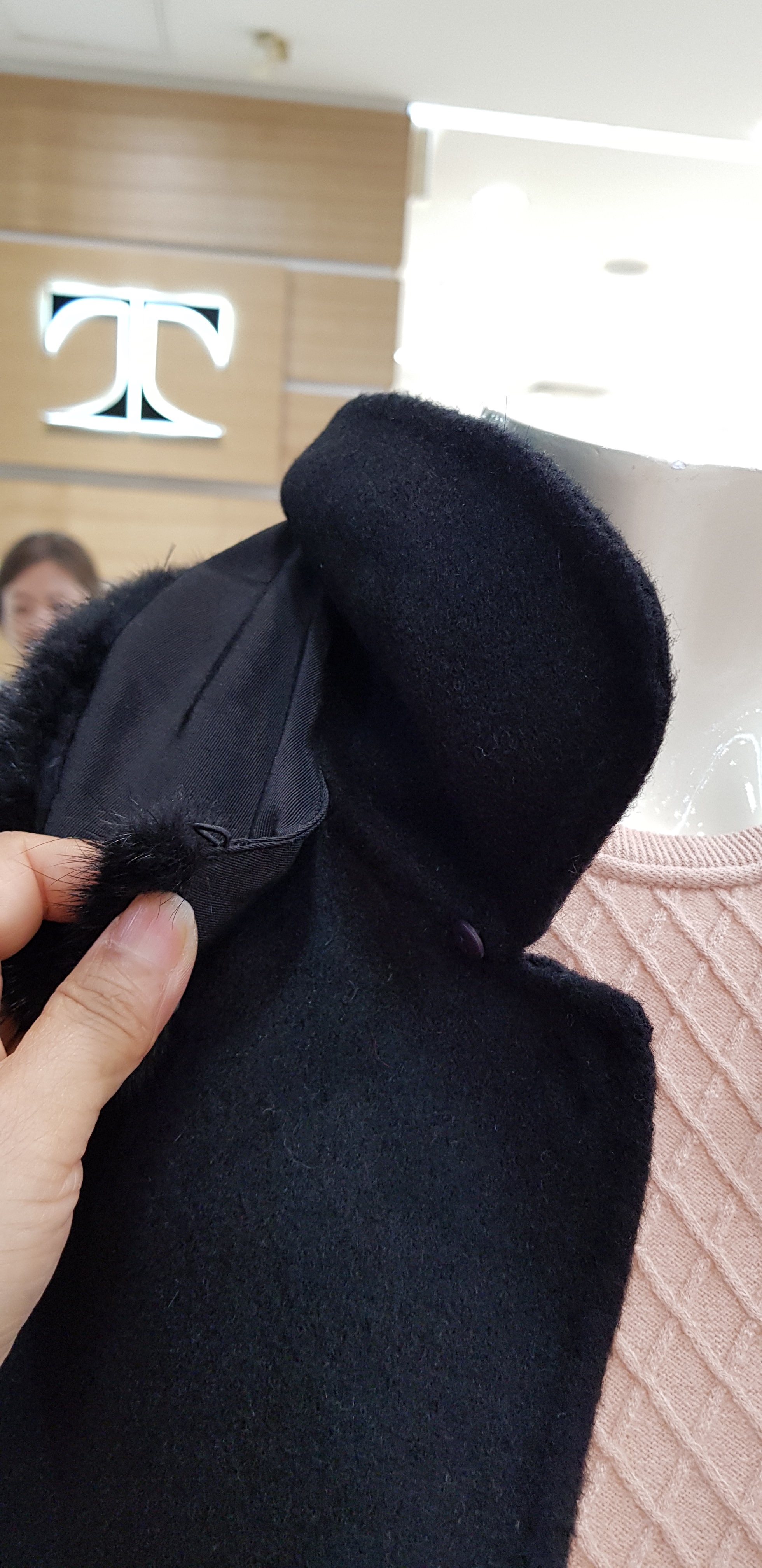 기비~박시한핏의 스탠카라 코트입니다 가볍고 따뜻한 핸드메이드로 고급스럽고 탈부착이 가능한이중카라의 독특함이 있는 아이템입니다 총장86센티입니다