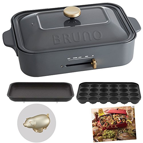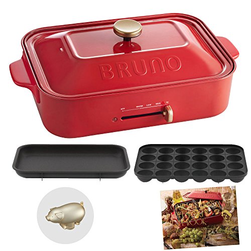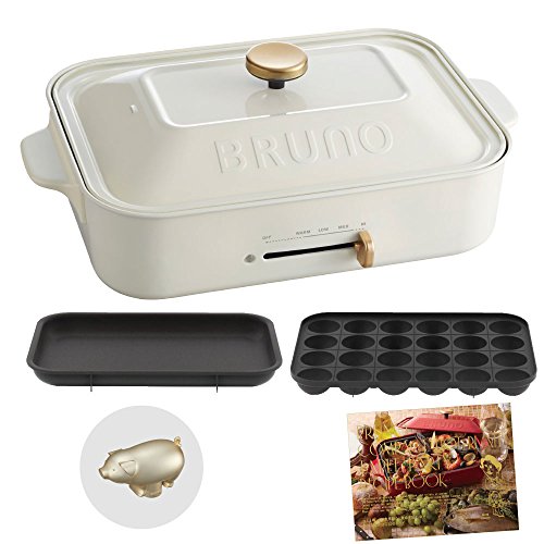 Bruno BRUNO 콤팩트 핫 플레이트 + 레시피(요리처리법) 북 + 데코레이션 노브 핏구 3점 세트